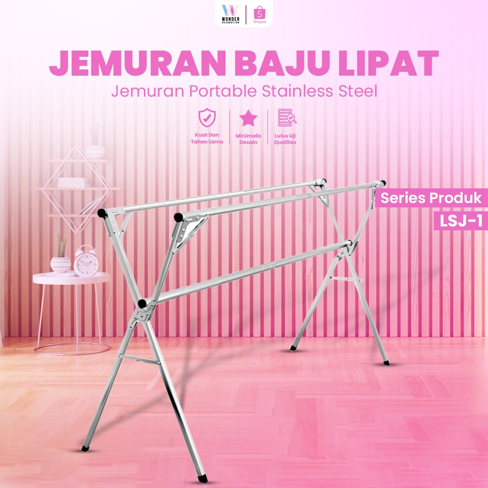 Jemuran Baju Lipat Stainless Steel Portable Jemuran Baju Anti Karat Jemuran Portable -Wonderdekorasi