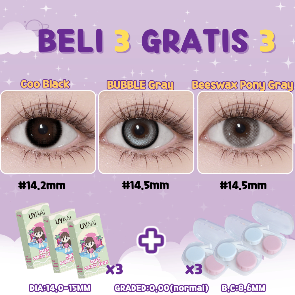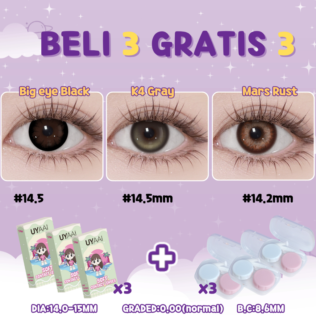 [] BUY 3 Get 6 UYAAI SOFTLENS LENSA KONTAK Contact Lens Eye 14.0mm-14.5mm use 6 Months