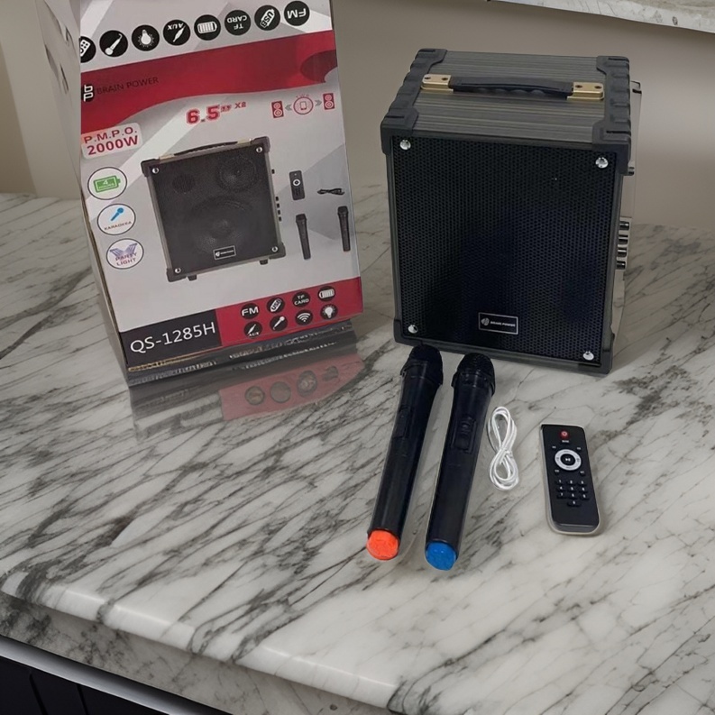 MKC KIMISO-1285H AUDIO BLUETOOTH SPEAKER BASS BESAR SPEAKER PORTABLE BLUETOOTH QS-1285H 6.5 X 2 INCH FREE 2 MICROPHONE WIRELESS MODEL KLASIK