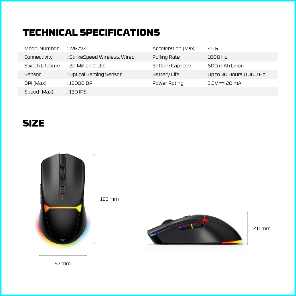 Fantech Crypto Gen Ii Vx7v2 Wg7v2 Mouse Gaming Wireless Dongle 2.4ghz Pc Kabel Macro
