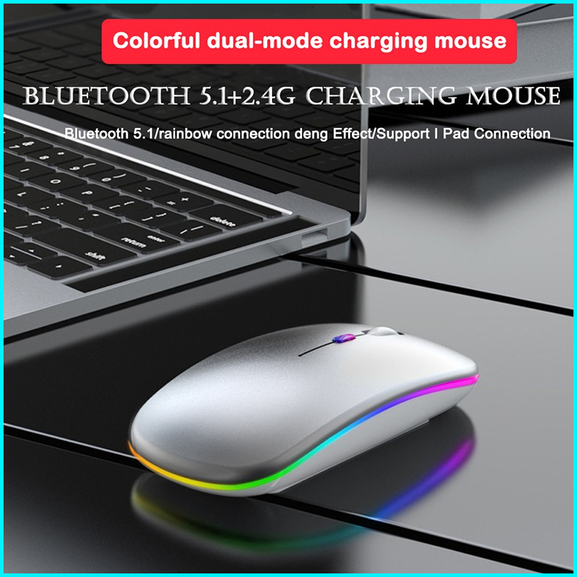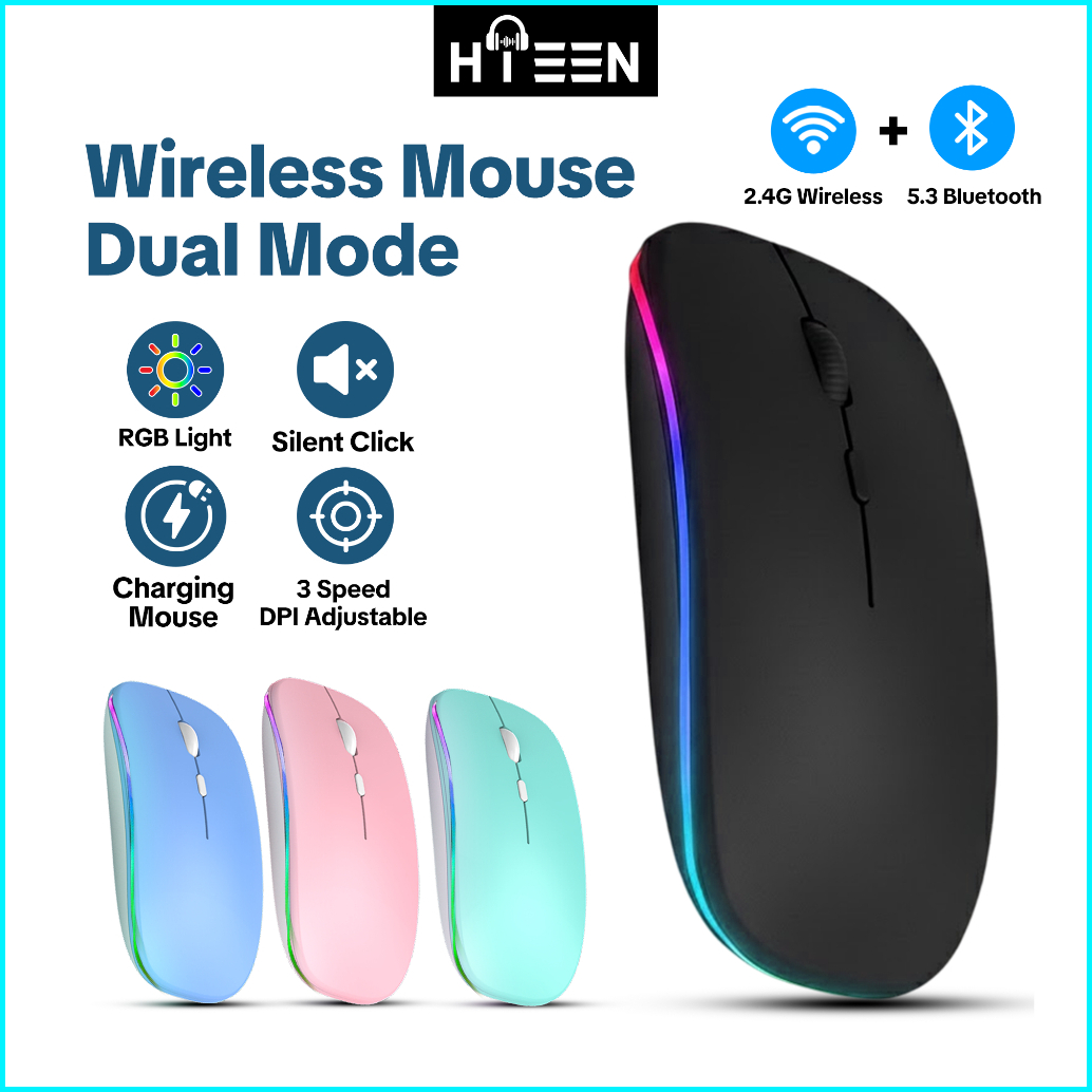 Hieen Mouse Buletooth Wireless 2.4 Ghz Silent Click Rechargeable Ultra Slim Rgb Led Backlit Mouse - S9