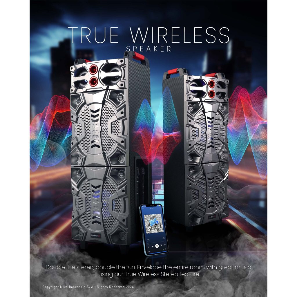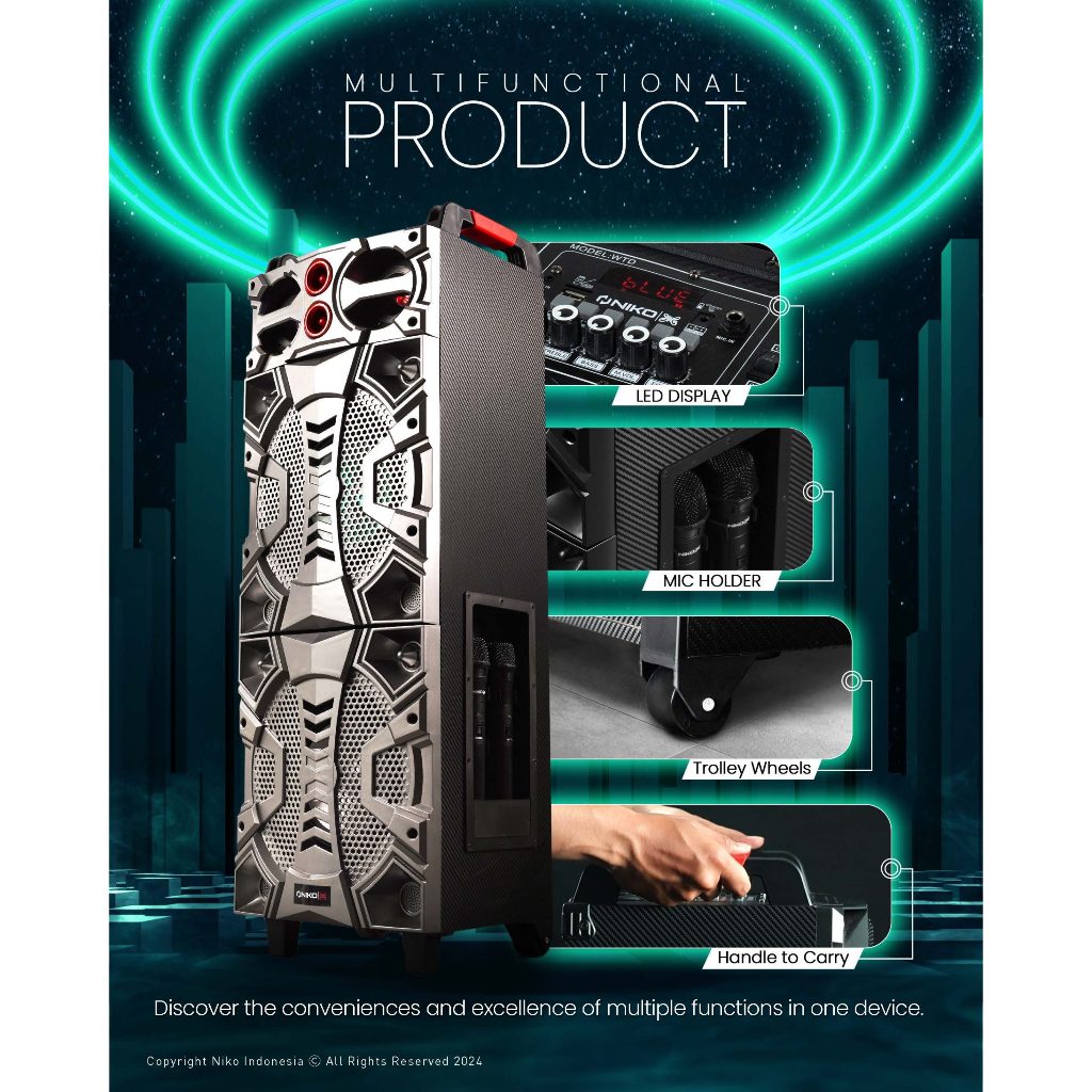 Niko WTD8B Speaker Bluetooth Karaoke Wireless Portable Super Bass Aktif BONUS 2 Pcs Mic Wireless