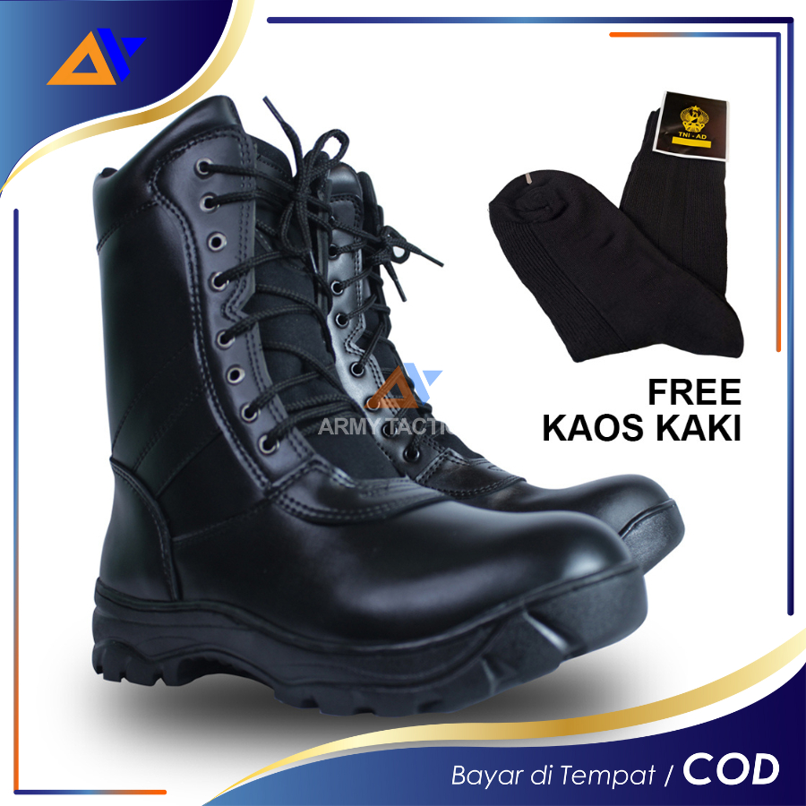 [FREE KAOS KAKI] Sepatu PDL TNI Satpam Security Polri Banser Linmas Pria Hitam Doff Tali Resliting Boot
