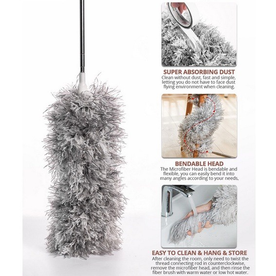 Kemoceng Microfiber Teleskopik Lipat 2.8 Meter Alat Bantu Pembersih Debu Sarang Laba Jendela Fleksibel Gagang Stainless