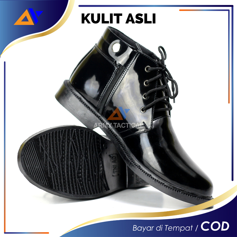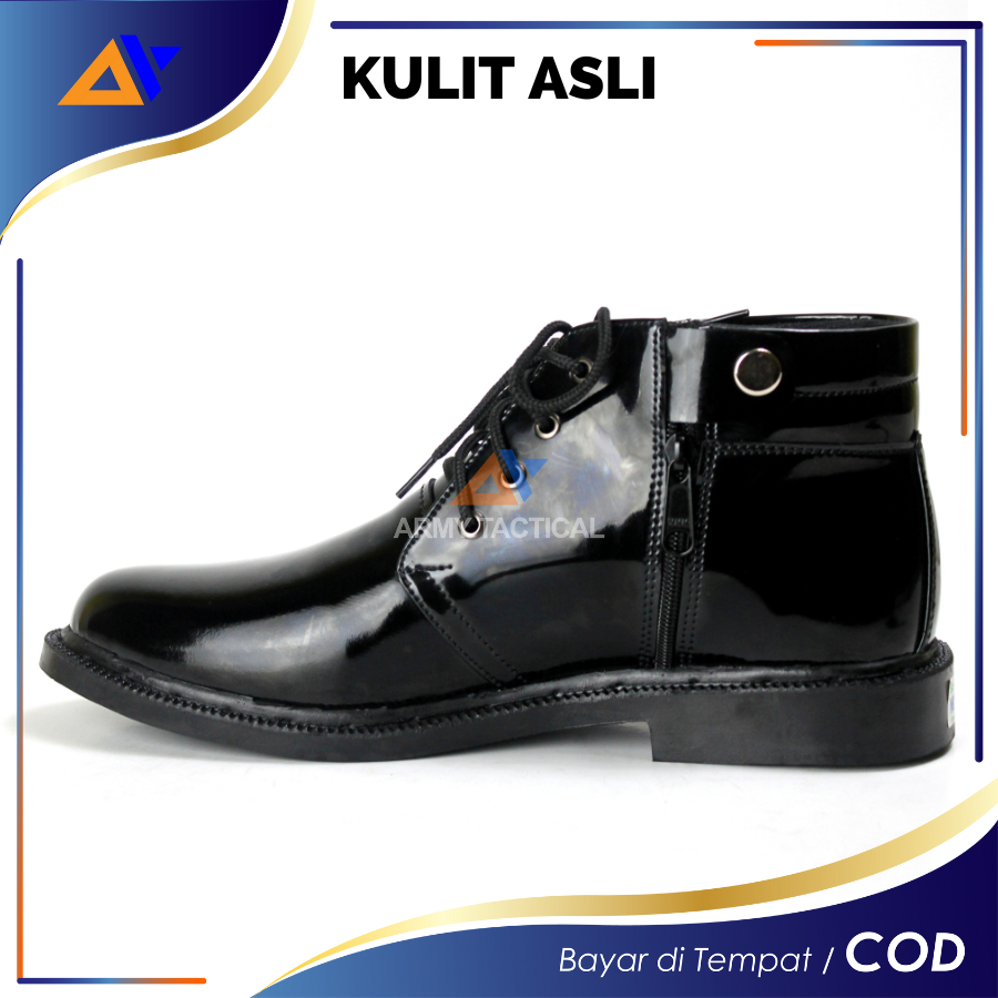 Sepatu PDH Kulit Asli 03 TNI AD Dinas Polri Polisi Security Satpam Mengkilap Pria Sepatu Kerja Kantor Oxford Pantofel Glossy Tali Resliting