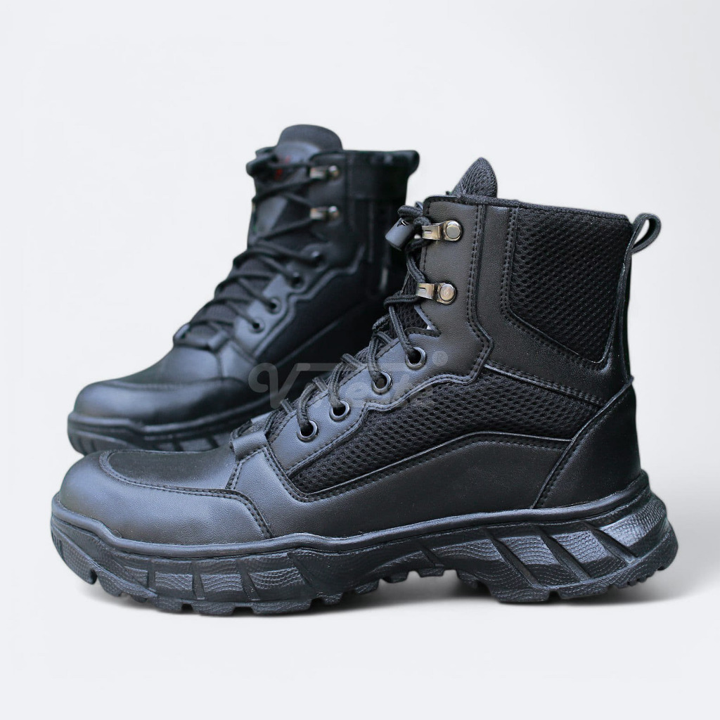 VMESTE - Sepatu PDL Cello TNI Polri Brimob Security Satpam Kulit Sintetis Hitam Doff Ujung Besi