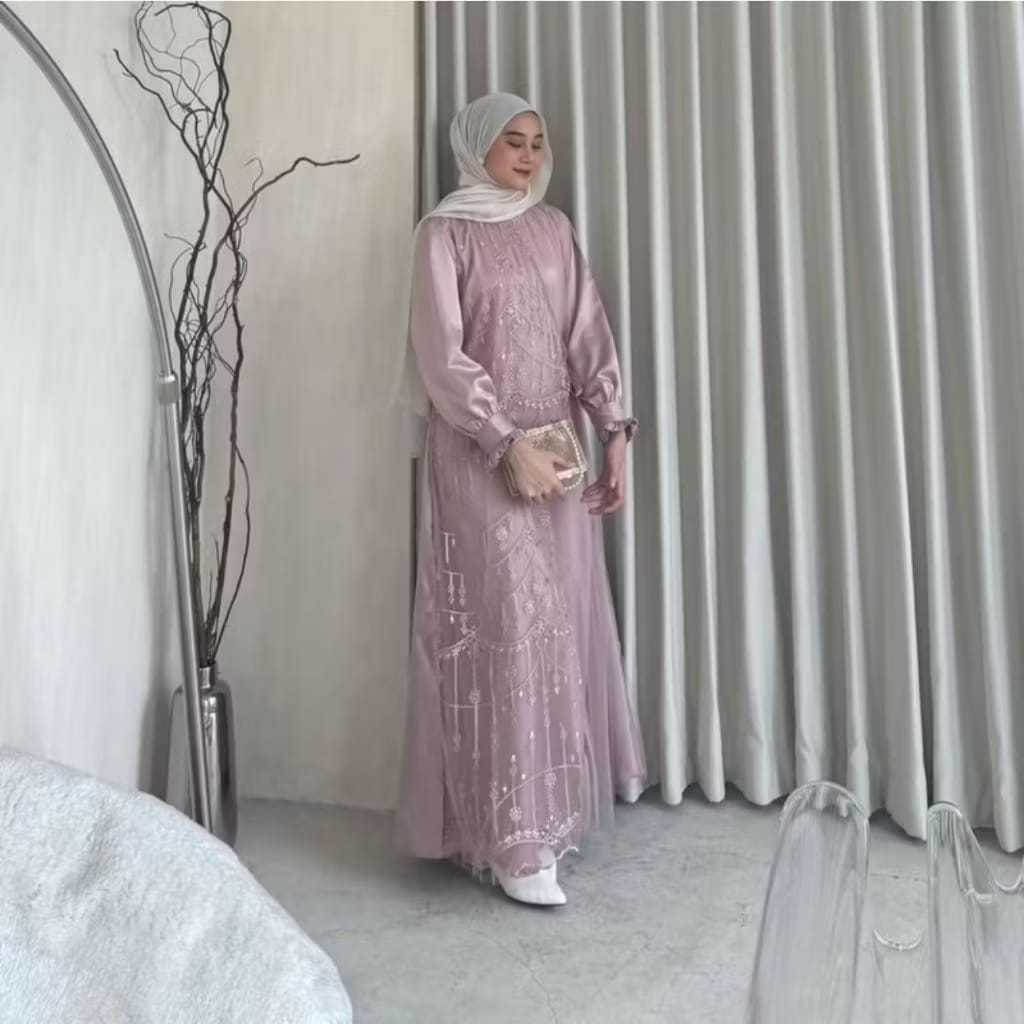 Gamis kondangan remaja Kinar Gamis Brokat Burgundy Premium Maxi Dress Pesta Exclusive Kekinian Laris