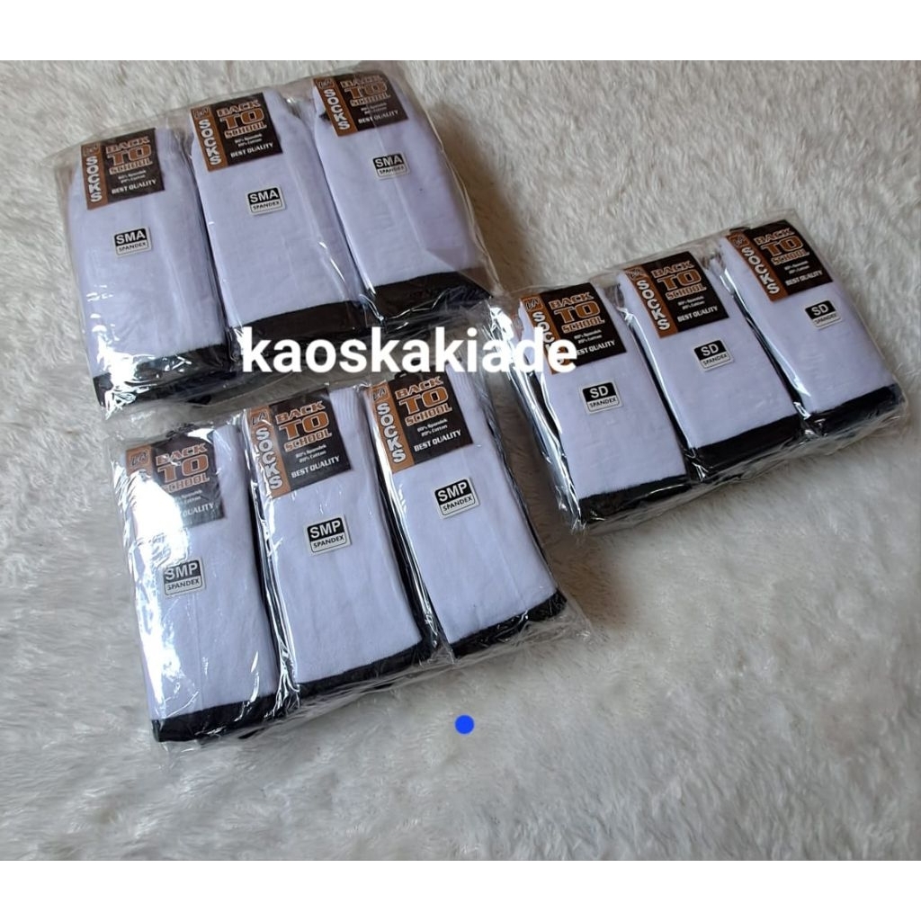 12Pasang Kaos Kaki Anak Sekolah Hitam Putih SD SMP SMA