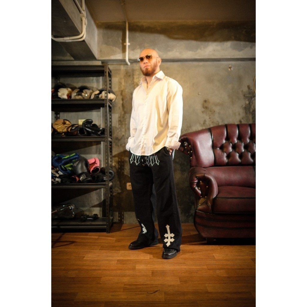 DENIMITUP H zigzag sweat pants - Jet black - Celana panjang pria