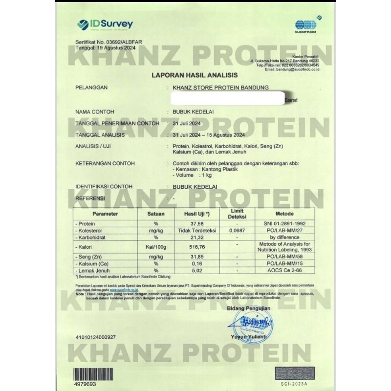 Whey Khanz Protein BUBUK KEDELAI PROTEIN NABATI 1000 GRAM