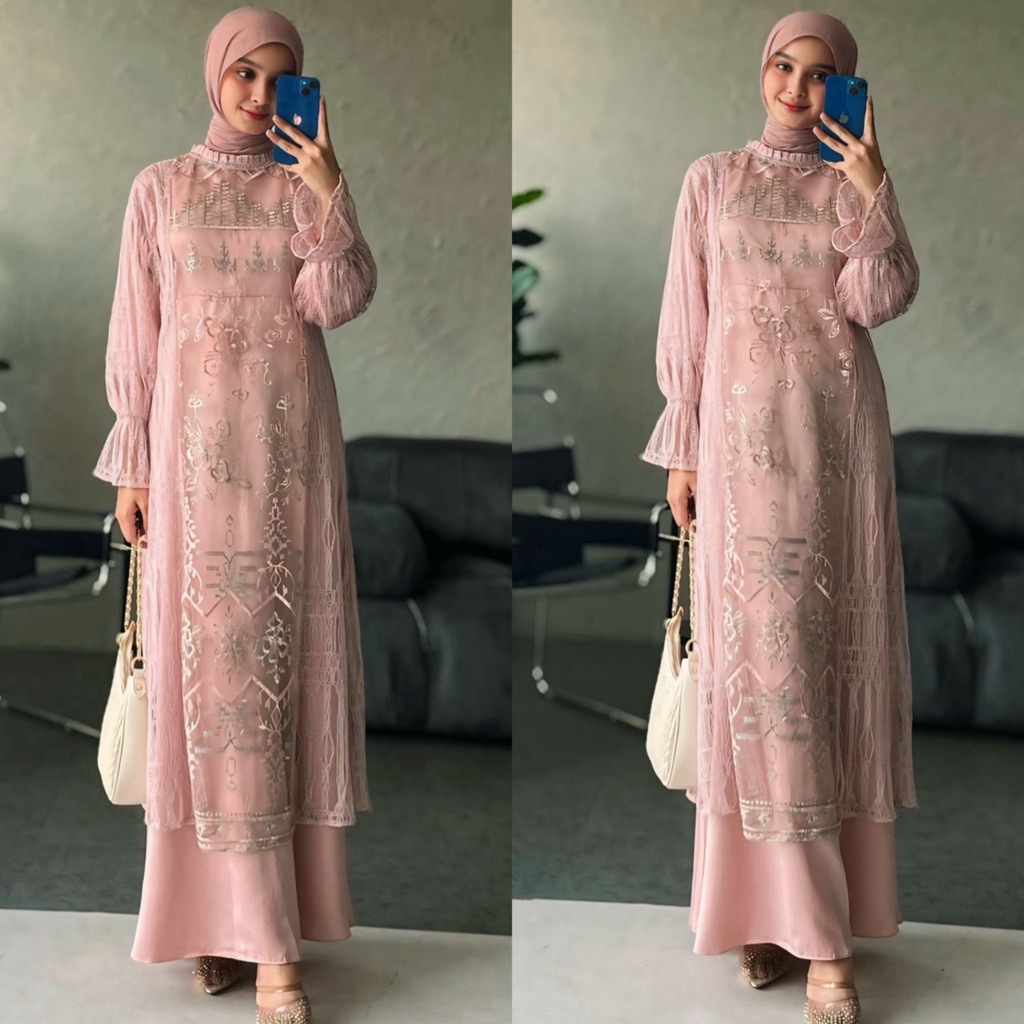 hijablabel - SPECIAL PRICE ZEYA DRESS SET ( DRESS + TUNIK BLOUSE LACE ) DRESS TERBARU / GAMIS KONDANGAN / DRESS PESTA TI