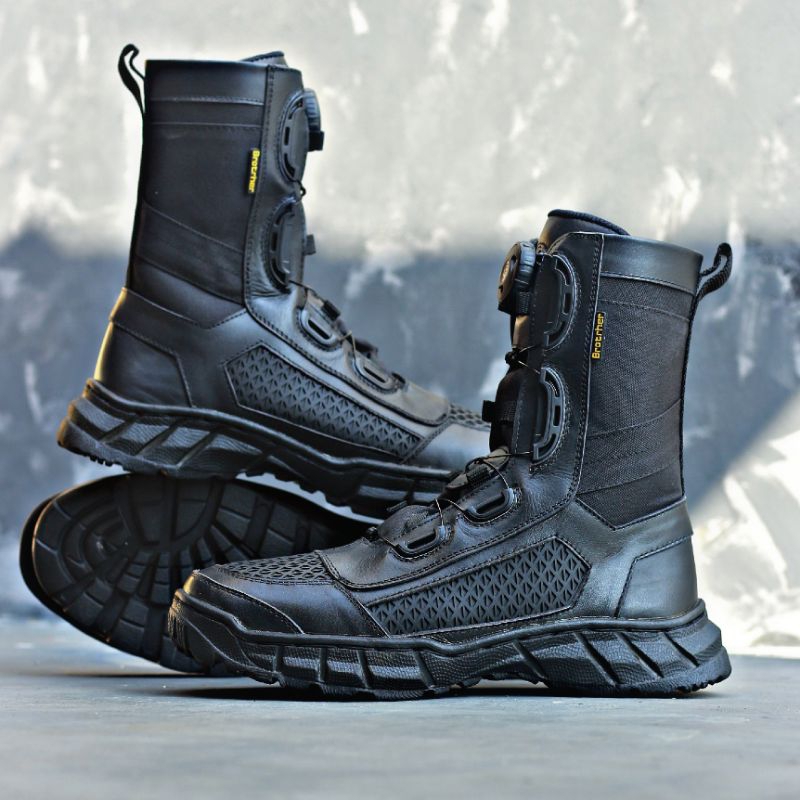 Sepatu Pdl Brother boots safety Tni Polri kulit asli ujung besi tali putar cepat anti air Merk Brotrher Fitwon
