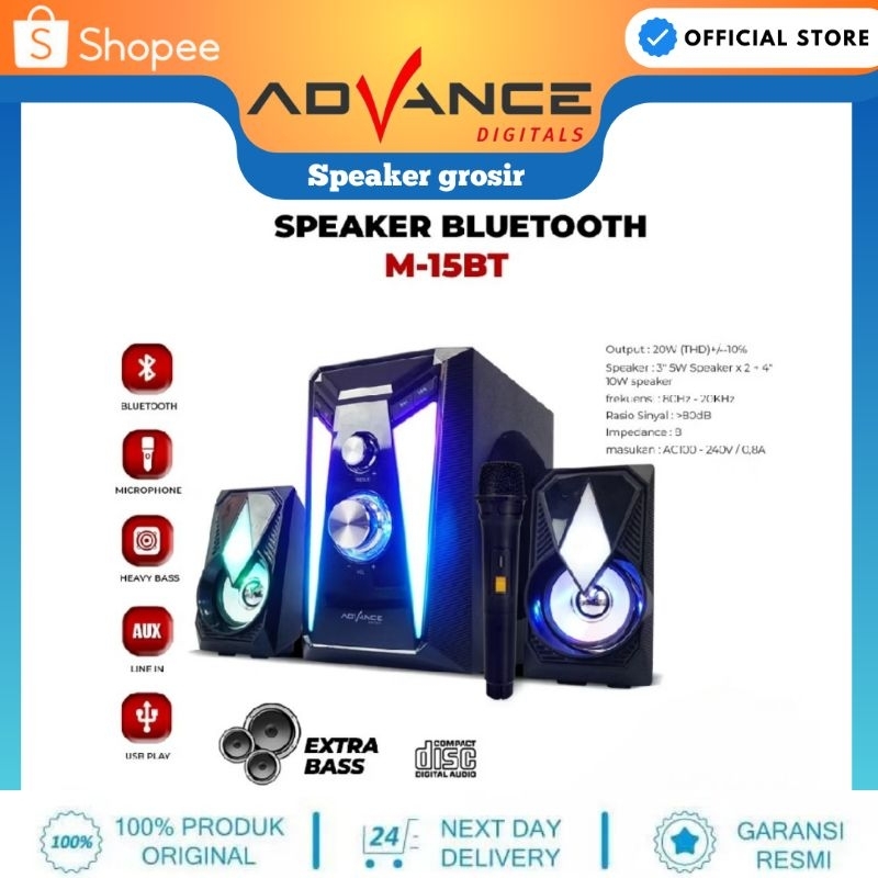 Speaker Advance M15BT Stereo Bluetooth Xtra Bass Subwoofer Free 1 Mic M-15BT