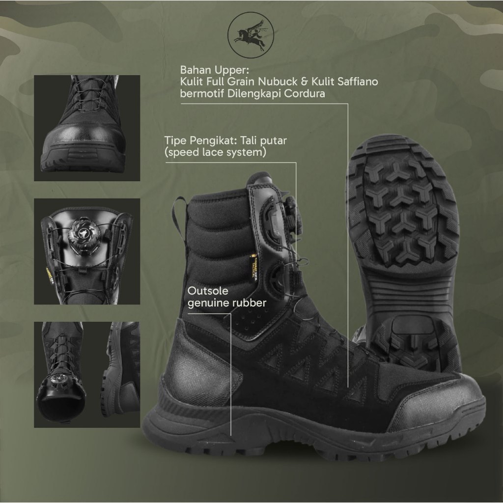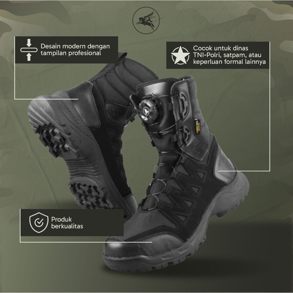 Sepatu PDL TNI Polri Artemis Stride Kulit Full Grain Nubuck Elegan Tali Putar Speed Lace Anti Slip By COMBATKICKS
