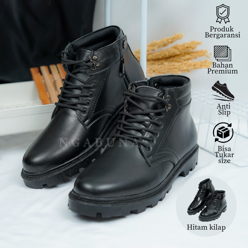Sepatu pdh tali resleting sepatu dinas tni polri security satpam mengkilap dan doff