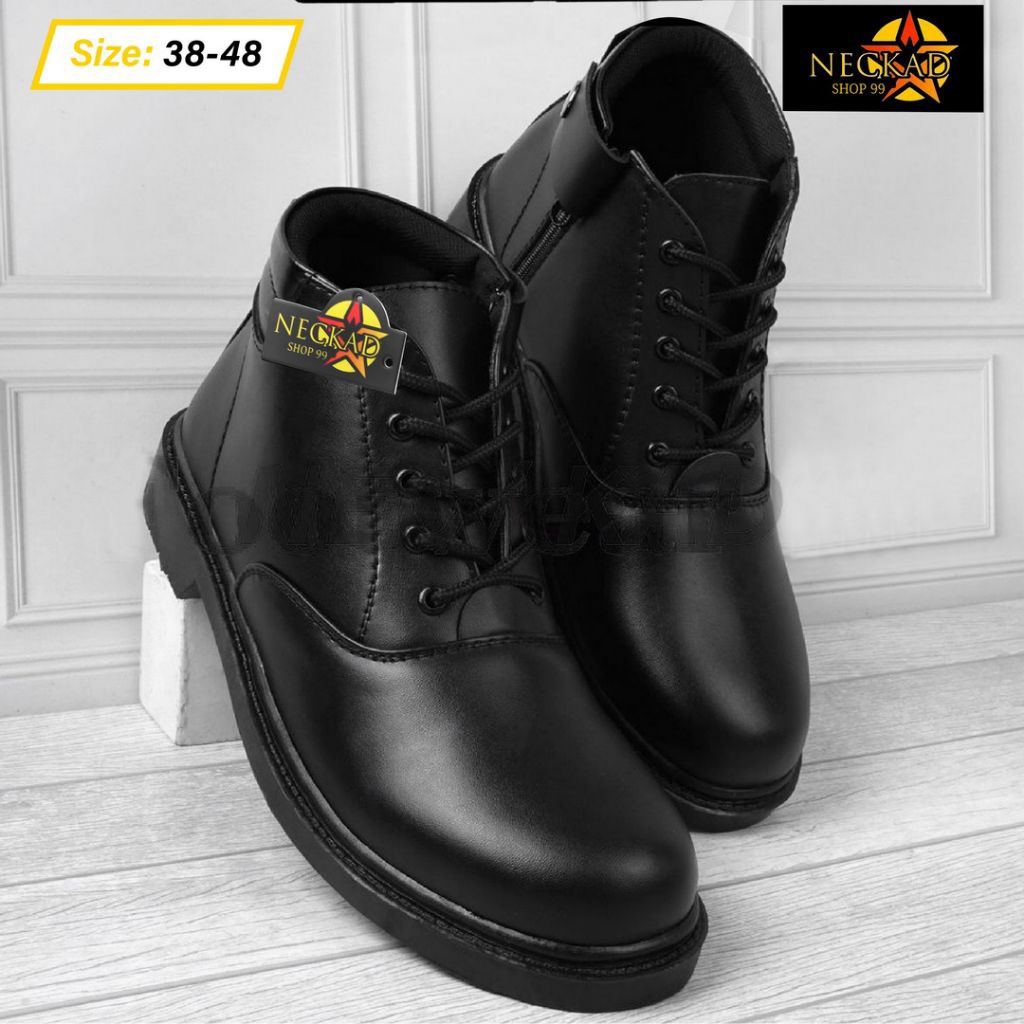Neckad Sepatu PDH Pria Dinas Polisi Polri TNI Security Resmi Pantofel Tali Kilap & Dop Satpam Kantor Kerja