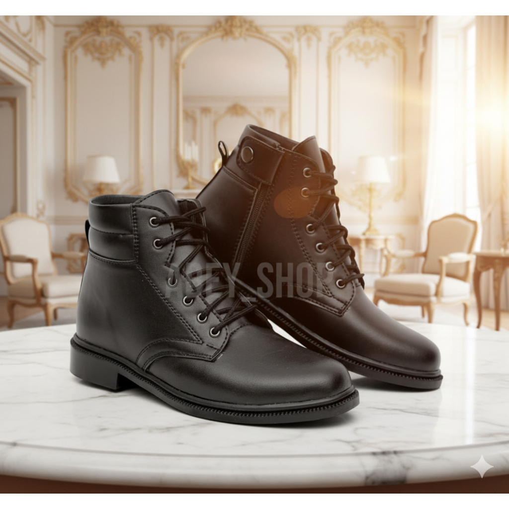 Sepatu PDH Pria Doff & Mengkilap Tali Resleting Pantofel Resmi Dinas TNI POLRI SECURITY SATPAM