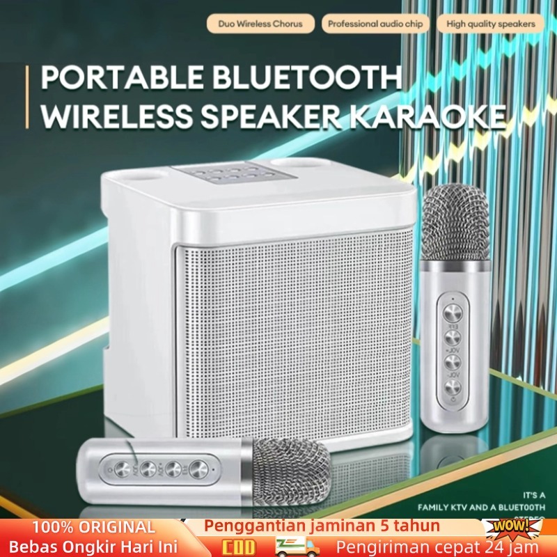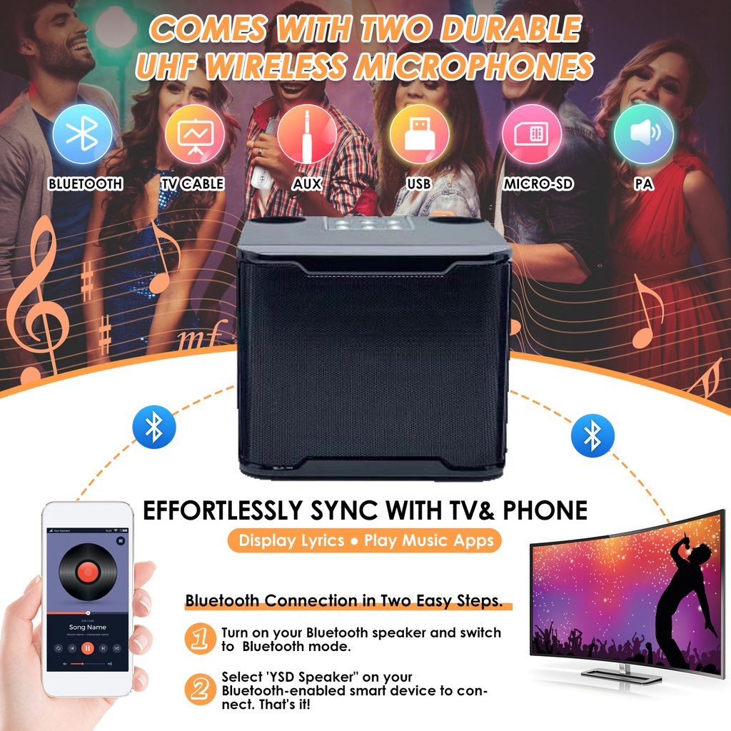 Speaker Bluetooth KARAOKE 2 Mic Wireless Outdoor Party Ktv YS-203 Voice Karaoke for Mobile Phone