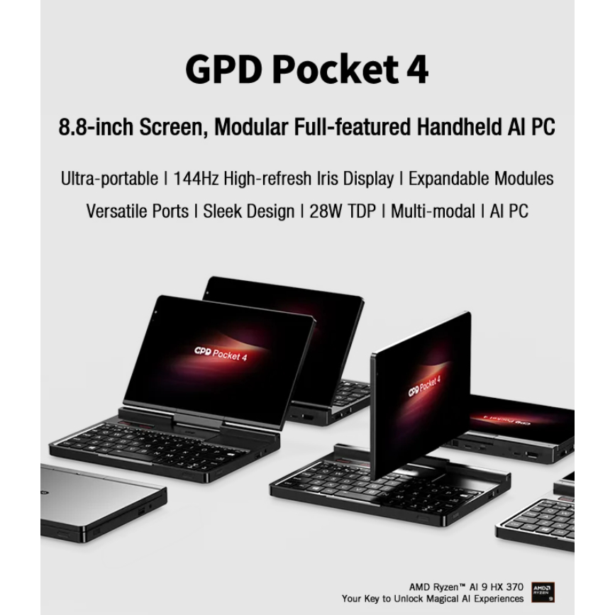 GPD Pocket 4 Laptop Mini 8.8 inch Ryzen AI 9 HX 370 365 Ryzen 8840 Modular Tablet Mode 144Hz Ram Up To 64GB SSD 2TB