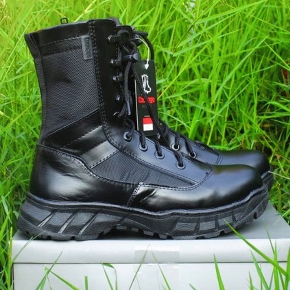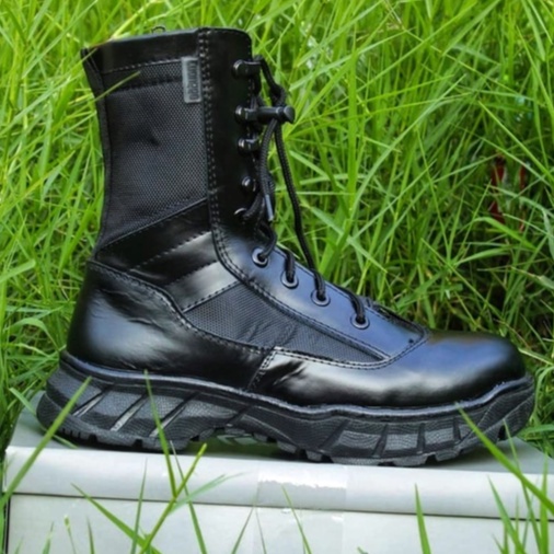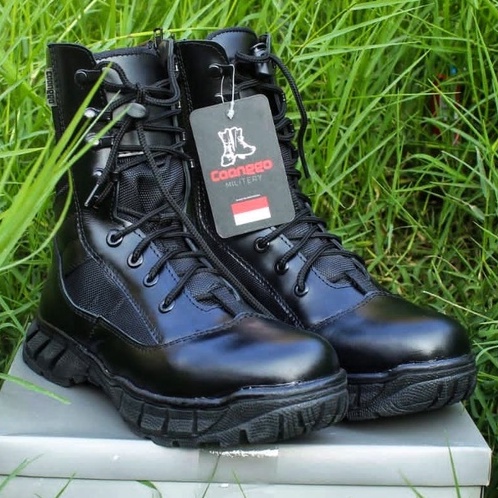 Sepatu PDL Jatah Polri TNI Kulit Asli Original CAANGGO Militery Hitam Tinggi 10 Inc Anti Slip
