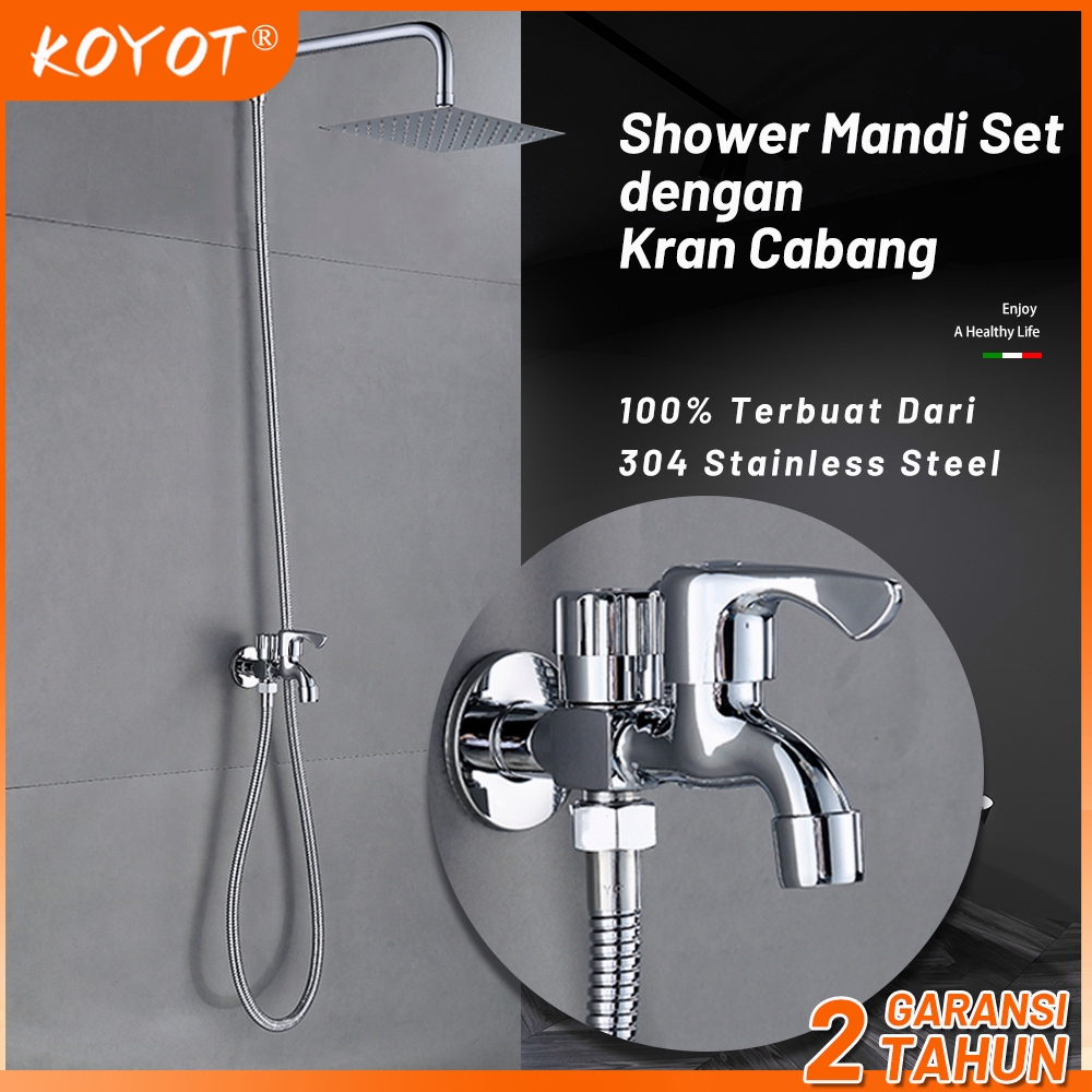 Koyot Paket Shower Head Shower Kamar Mandi Full Set Kran Cabang Shower 304 Stainless Steel Persegi 8 " Dengan Kran Caban