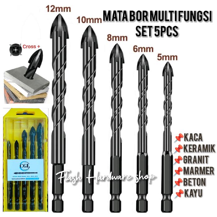 Paket Mata Bor Multi Fungsi Hitam CGL MATA CROSS (+) isi 5pcs - HITAM 5pcs