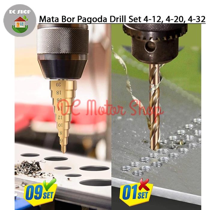 Mata Bor Pagoda 3 PCS Besi Kuningan Kayu Plastik Step Drill Tingkat - Mata Bor Pagoda