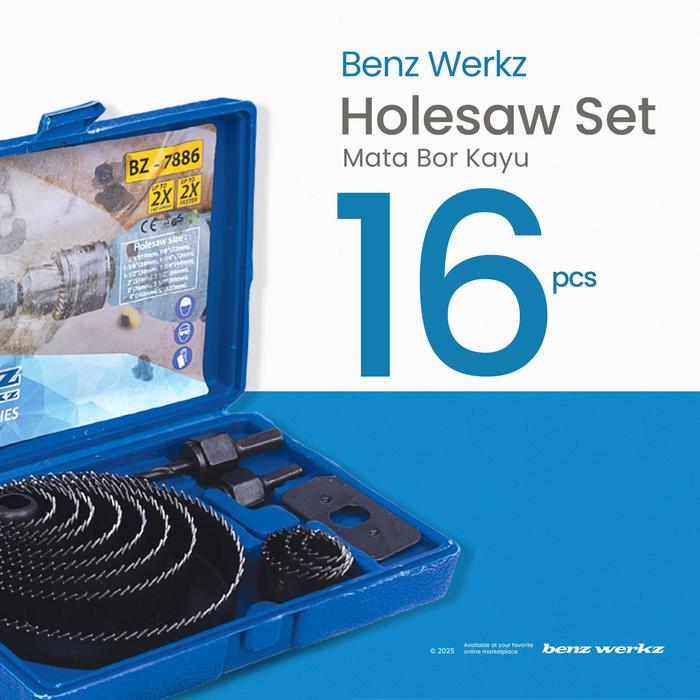 Holesaw Kit Set 16 Pcs / Mata Bor Kayu Plong HSS Benz Werkz