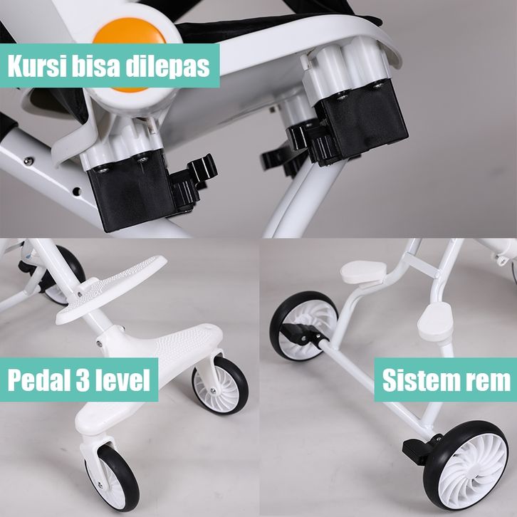 HAPYEE Stroller Baby 2 Way Foldable Newborn Can Lie Flat Ringan Putih