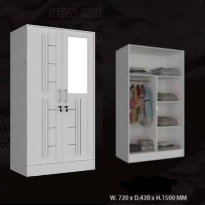 Kamar Set Lemari Pakaian Putih Kaca Panjang Dan Meja Rias Putih