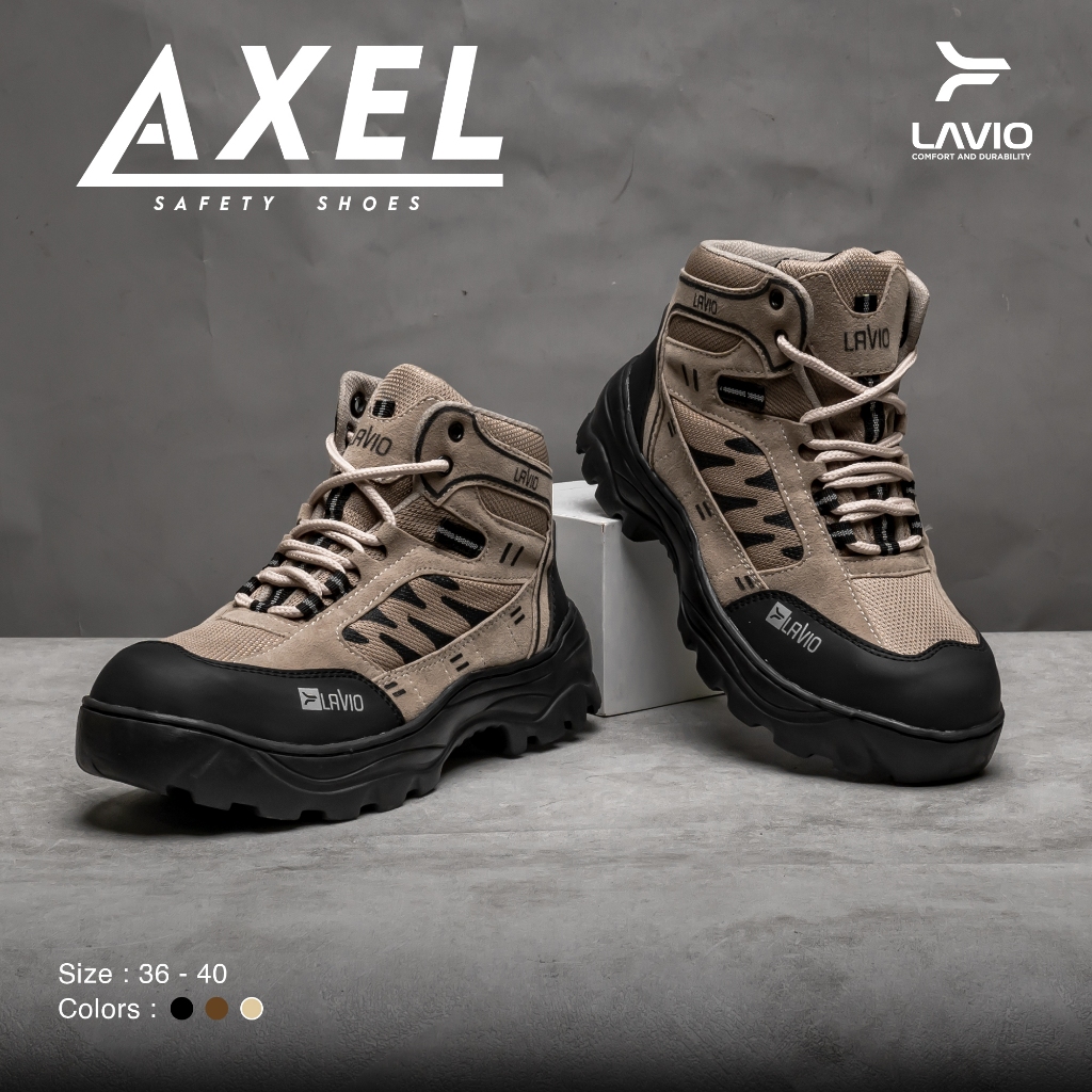 Sepatu Safety Pria Keren Lavio Axel Sefty Ujung Besi Steel Toe Cap Outdoor Gunung Hiking Trekking Adventure Best Quality