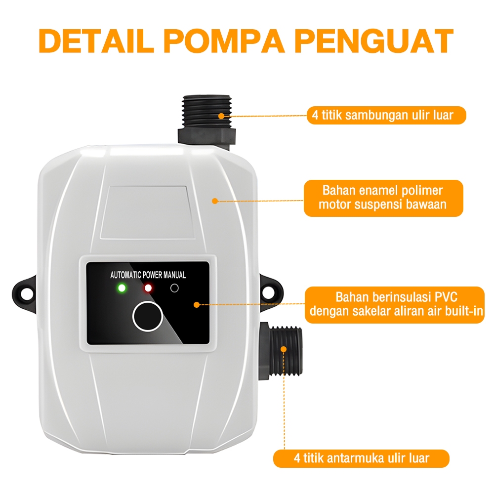 250W Pompa Booster Pendorong Air Otomatis 45L/min untuk Shower Water Heater dan Mesin Pendorong Air