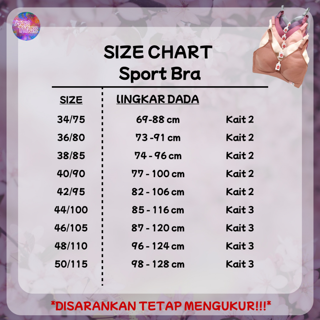 6 PCS & 12 PCS Bra Jumbo Wanita Sport Bra BH Sport Jumbo Tanpa Kawat Busa Tipis Bahan Full Katun