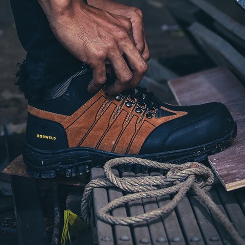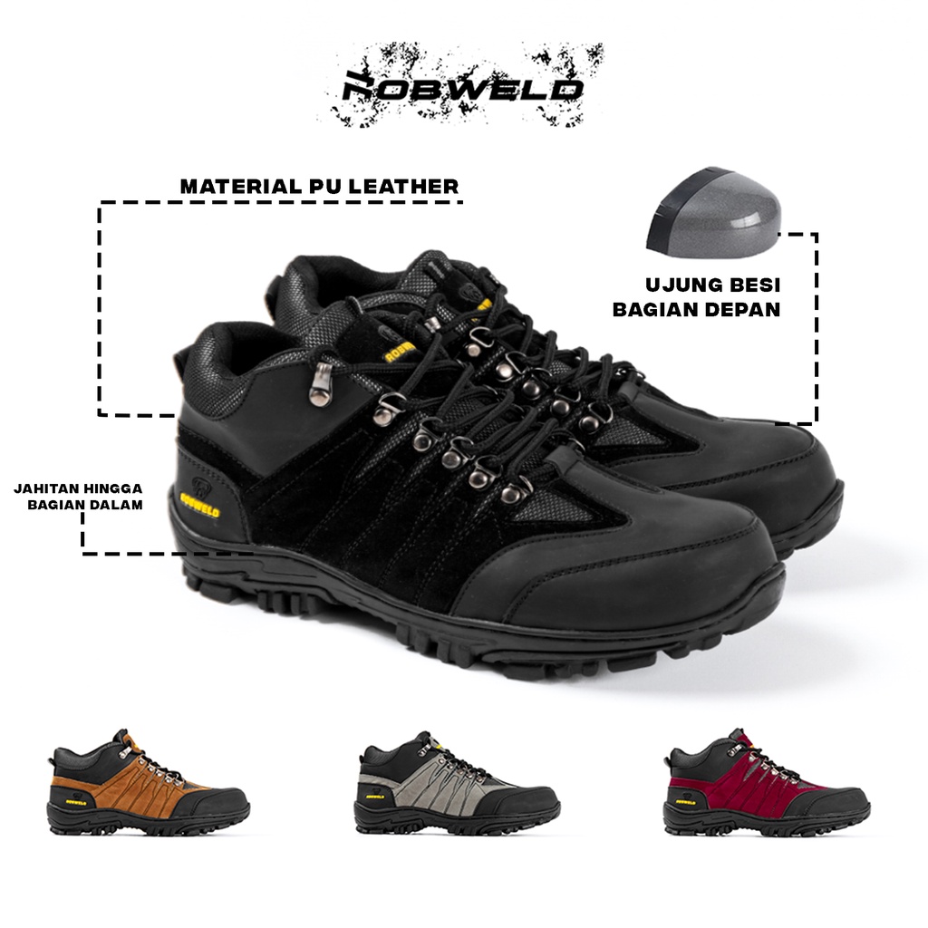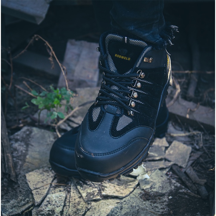 Sepatu Boots Safety Pria Hiking Ujung Besi Safety Proyek Lapangan