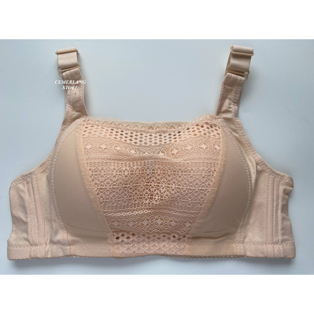 3 PCS BH BRA Kemben Busa Tanpa Kawat Cup Besar Renda Jaring Cantik Kait 4 Size 36 38 40 42 44 46