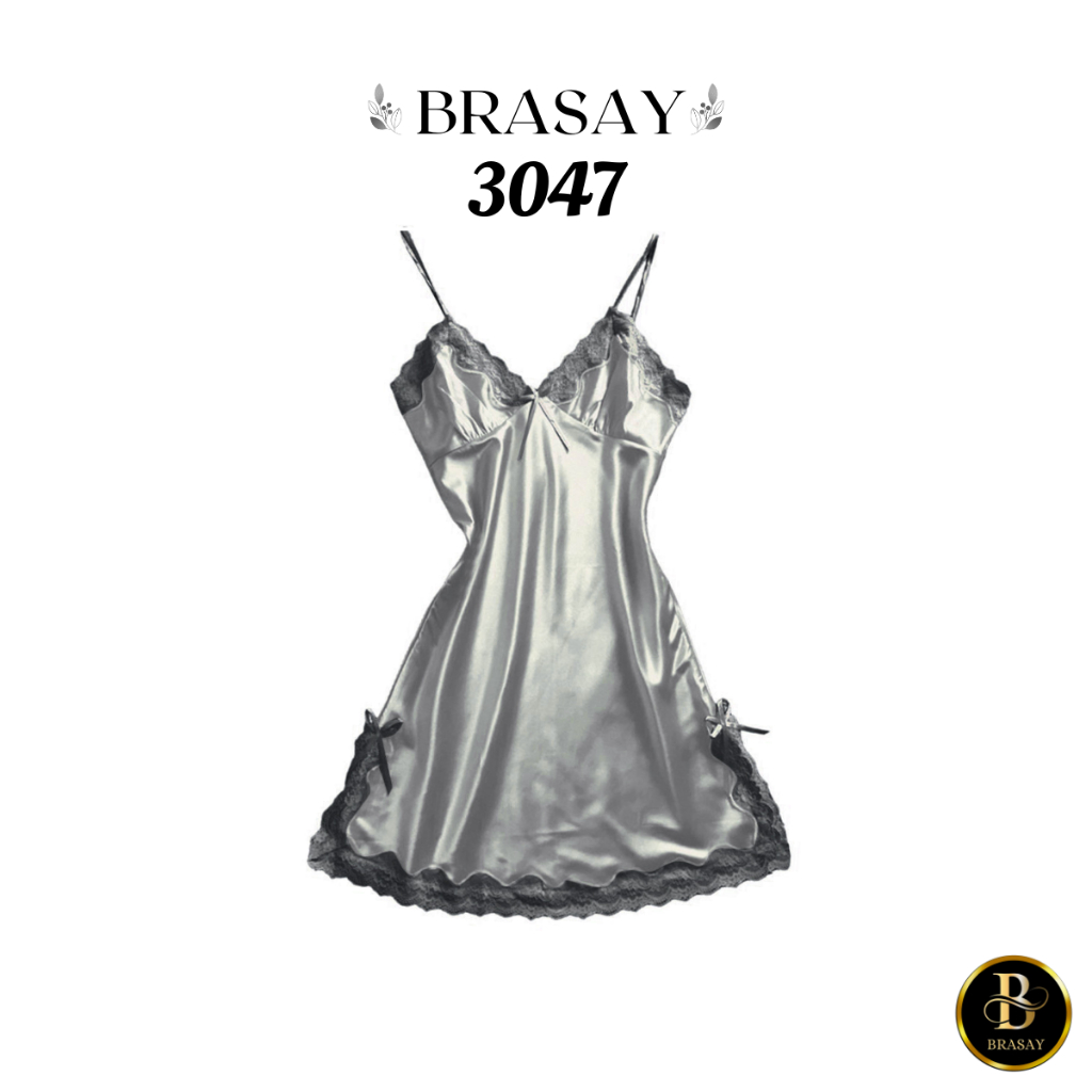 Brasay Lingerie Dress Satin Mini Deep V Silk Baju Tidur 3047