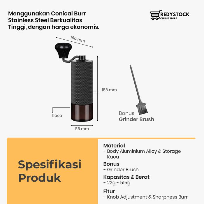 HAND COFFEE GRINDER KOPI MANUAL STAINLESS STEEL CONICAL BURR JS-20