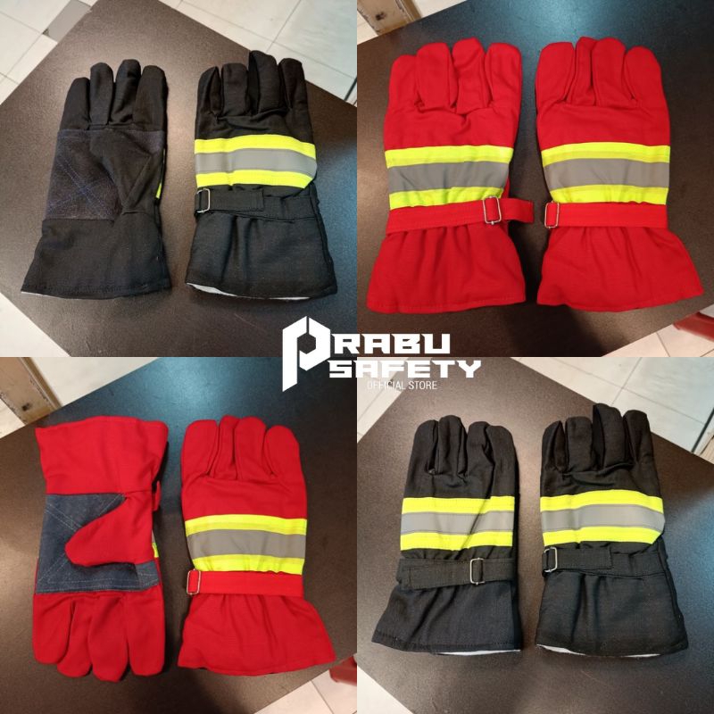 Sarung Tangan Safety Pemadam Kebakaran Lokal - Fire Gloves Hitam - Merah