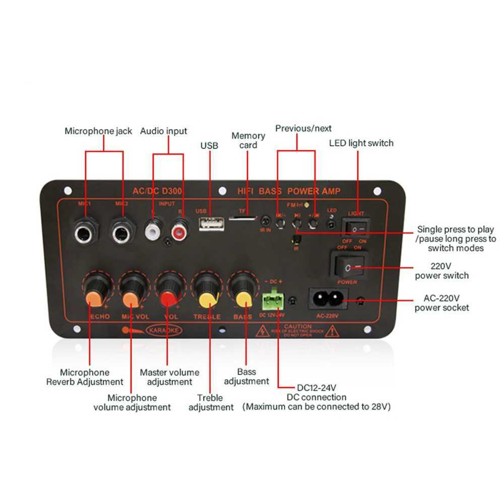 Kejian D300 Amplifier Board Karaoke Rumahan Audio Bluetooth Super Full Bass 5.0 USB FM Radio TF 100W