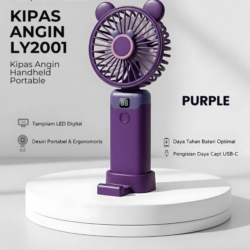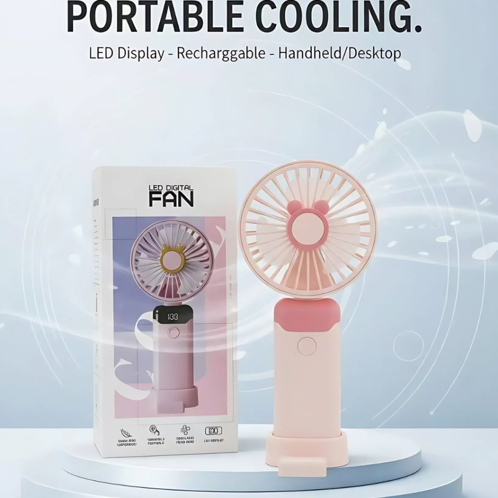 Kipas Angin Bulat LY2001 handheld portable led display angin kencang dengan 5 mode kecepatan