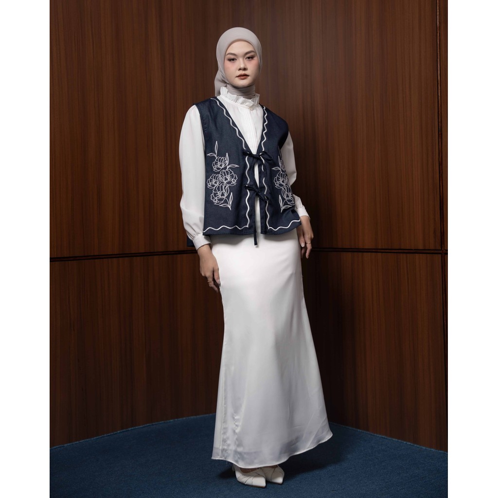 Mayoutfit Brinley Vest Outer Rompi Wanita Denim Bordir Bunga Embroidery Tali Pita