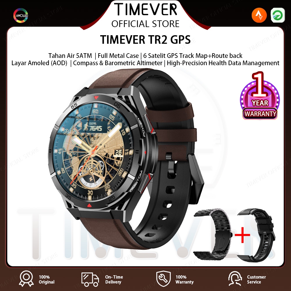 TIMEVER TR2 5ATM Built-in GPS Track Map Route Back AOD jam tangan pintar Pressure Altitude Compass Military Super Smartwatch Waterproof Explorer