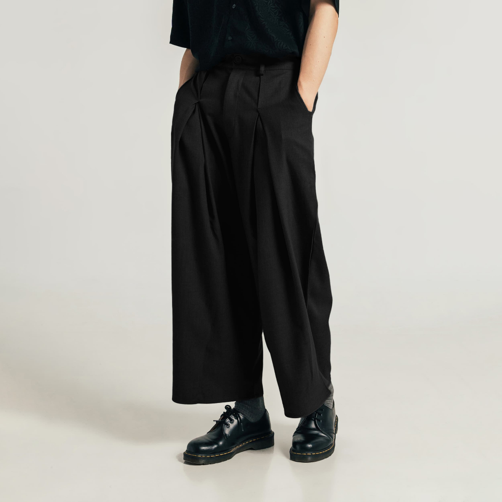 HEIM - Wide Leg Black Wool Trousers / Celana Panjang Streetwear Premium Wool Hitam Keren Baggy Oversize