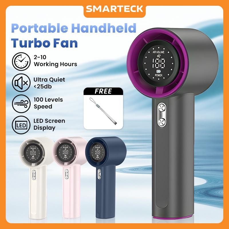 Smarteck Kipas Angin Portable SF08 High-speed Portable Handheld kipas Strong Wind 100 Gear Wind Speed Fan Digital Display Adjustable Turbo hand Fan for door sports and fast cooling 4000mAH