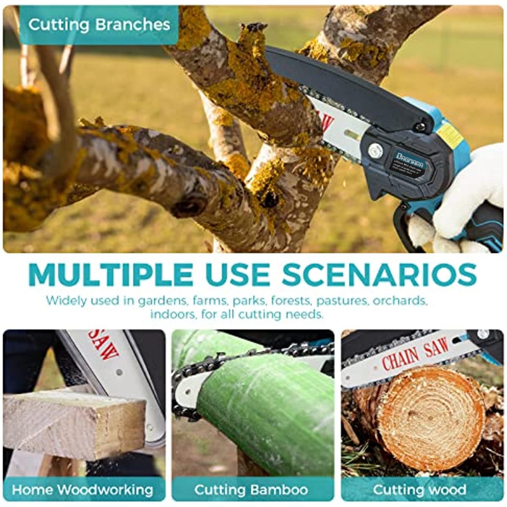 Dagmara Mini Chainsaw 6-Inch, Powerful Cordless Rechargeable Handheld Small Electric Saw Powered by 1Pcs 21V 13000mAh Ba