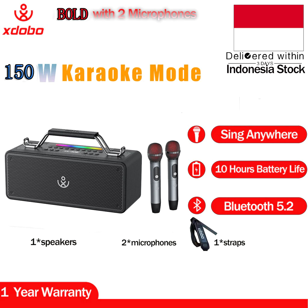 XDOBO 150W BOLD Wireless portable Karaoke Bluetooth handheld speaker Deep Bass with two microphones