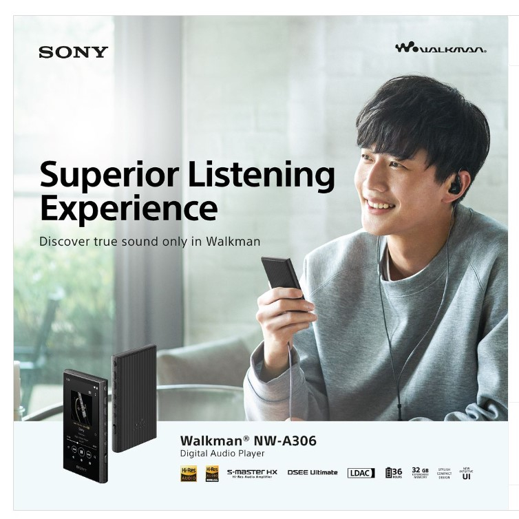 Sony NW-A306 Walkman 32GB Android Spotify Hi-Res Portable Digital Music Player up-to 36 Hour Battery, Wi-Fi & Bluetooth