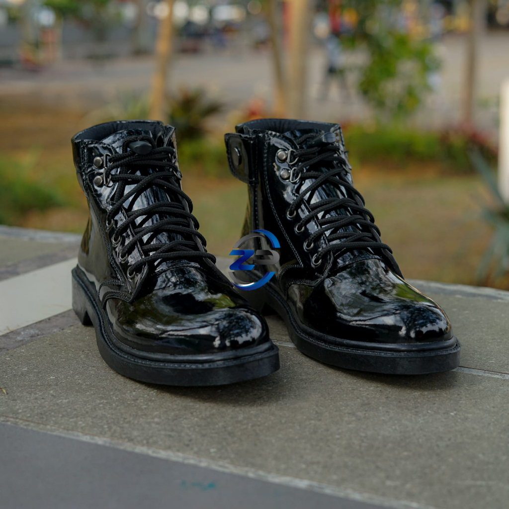 SEPATU PDH PRIA tali rel seleting polri tni polisi security satpam sepatu dinas harian intansi hitam doff/kilap