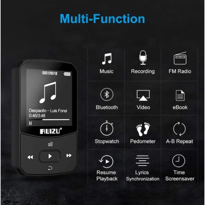 MP3 MP4 Player RUIZU X52 Wireless Bluetooth Portable Clip On DAP Digital Music Audio Player HiFi Pemutar Lagu TF Micro S