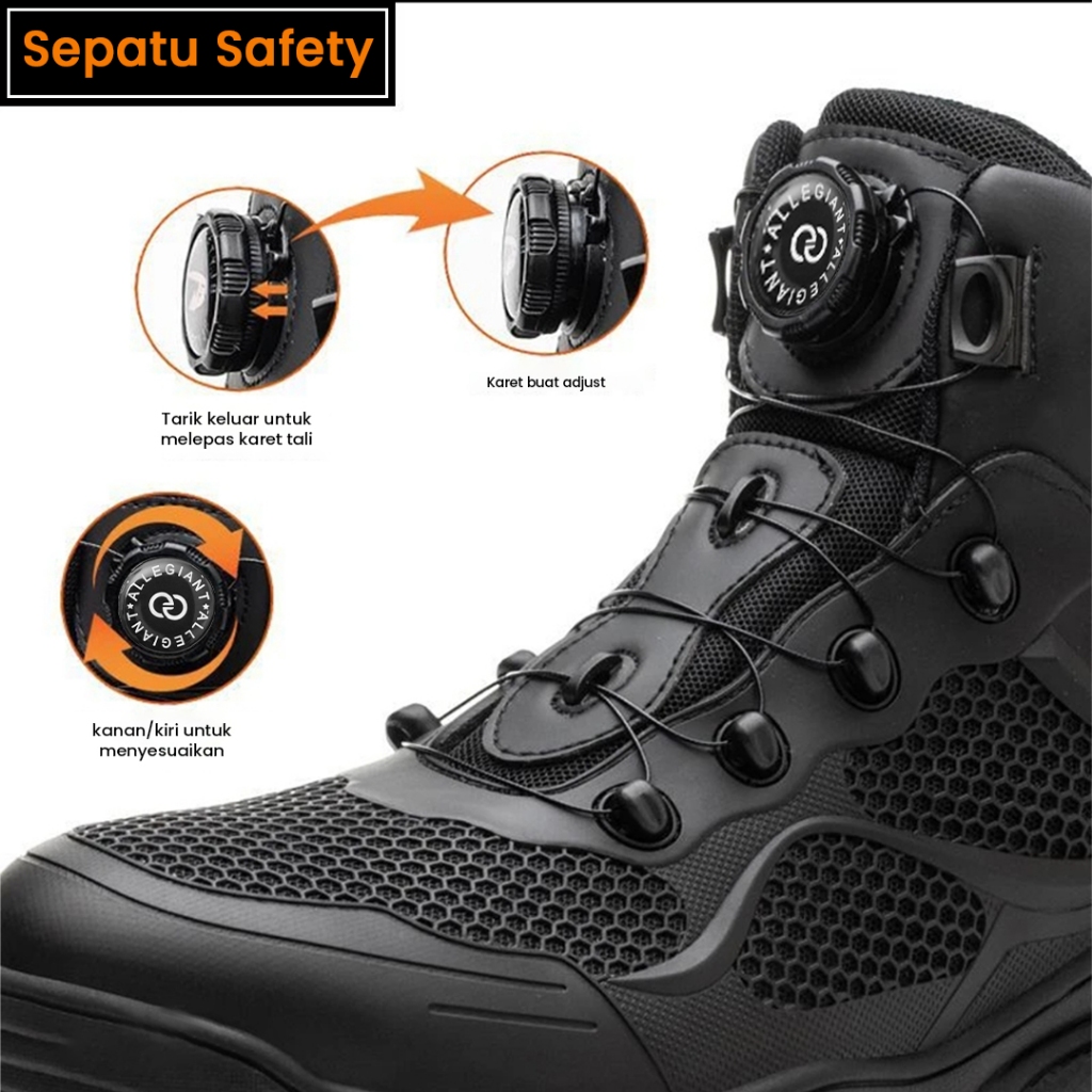 Sepatu Safety Boots Pria Tali Putar BOA SI20 Sepatu Kerja Proyek Model Baru Anti Slip